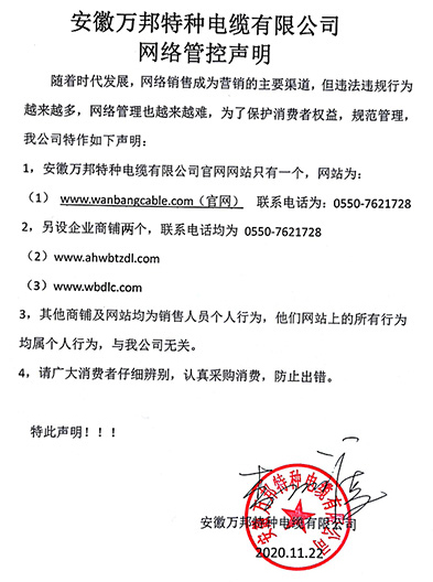 鄭重聲明:安徽萬邦特種電纜有限公司官方網站為:www_wanbangcable_com.ep800.com,除此之外無任何子網站或合作網站,其余均為假冒偽劣。電話:0550-7621728 13485756353 地 址:安徽省天長市滁州高新技術產業開發區經四路29號